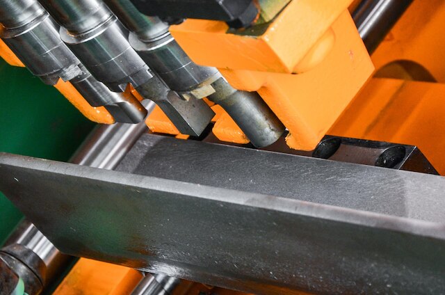 Two 169 ton punch cylinders each with three punch stations per hydraulic press allow the Anglemaster-HD to apply up to three different hole shapes/sizes per leg. This CNC angle line can accommodate shaped holes such as squares, rectangles, obrounds and slots.