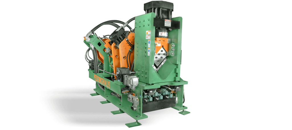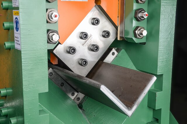 The Anglemaster-HD uses a single cut 515 ton shear press for the cutting to length angle and flat stock. A single cut shear mechanism eliminates the slug created by double cut shear mechanisms.