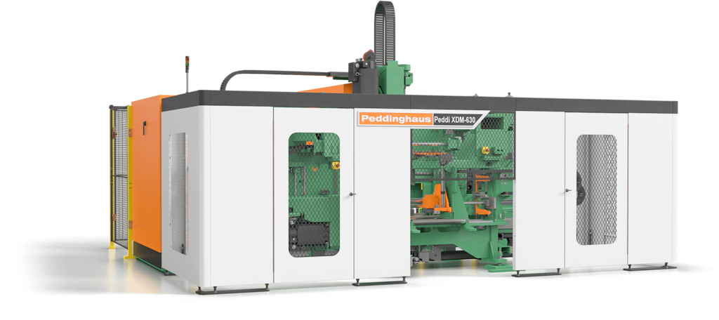 Peddinghaus has successfully fused drilling, sawing and coping operations into a single fabrication center. By combining a high-speed drill line with a double miter cut band saw, the Peddi XDM-630 CNC drill saw line executes drilling and sawing in harmony.