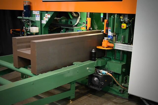Saw measurement options are available via the Peddinghaus AccuMeasure Roller Feed measurement system. The AccuMeasure allows for complete handling versatility, while maintaining a streamlined CNC solution. Splitting apart a drill and a saw allows neither machine to wait for the other, maximizing production.
